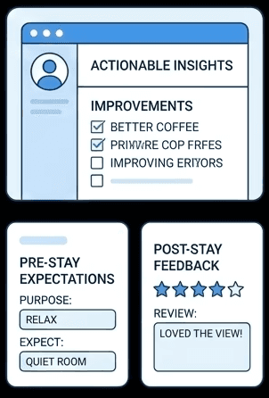Capture intent and expectation before the stay, and feedback after.